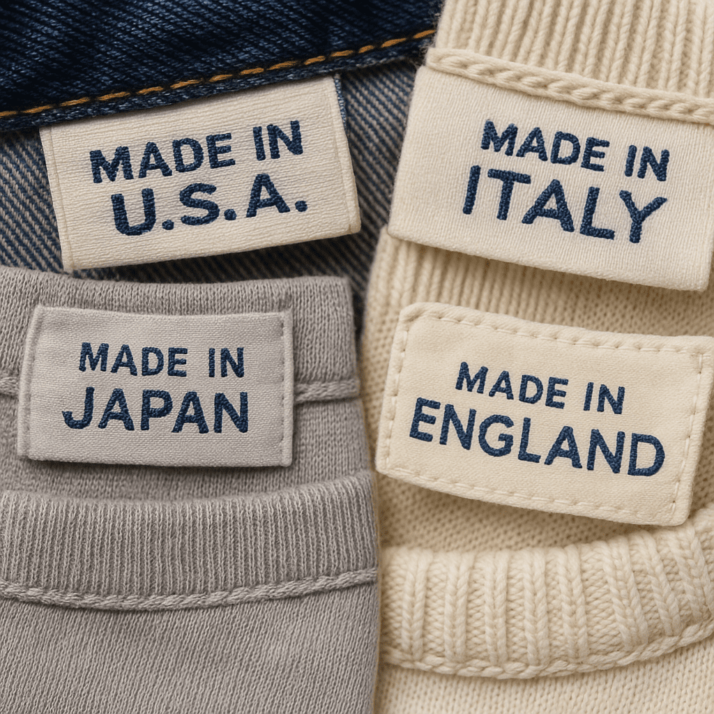 El país de fabricación es un indicador esencial. Hasta los 90, la mayoría de marcas occidentales fabricaban localmente o en países con altos estándares textiles.