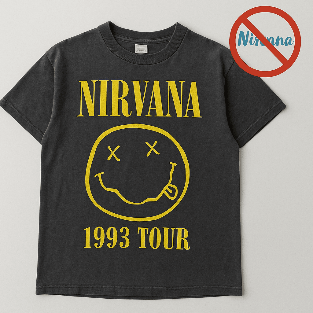 - Revisa si el nombre del tour o del álbum coincide con la fecha del diseño. Una camiseta de Nirvana con una gira de 1993 jamás debe tener impreso un logo moderno.